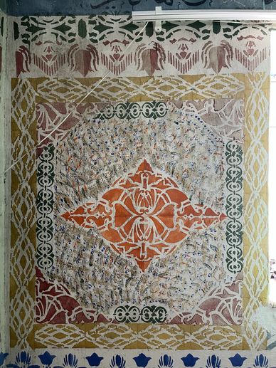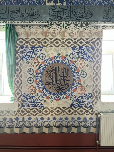 Bu motiflere artı olarak camide oldukça yoğun bir şekilde konumlandırılmış, hat sanatıyla yazılmış kalemişi yazıtların bulunduğu da görülmektedir. Cami gününmüze kadar ulaşan süslemeleriyle dikkatleri çekmekte olup kültürel mirasımızda güzel bir konuma sahiptir.