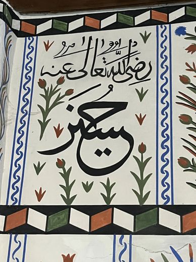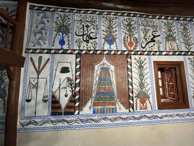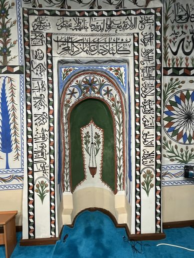 Duvarlar adeta bir cennet bahçesiymiş gibi bitkilerle bezenmiş olup hat yazıları serpiştirilmiştir. Mihrap ise Ayetel-kürsi yazan hat yazı kuşağı ile çevrilmiş olup içerisinde perde, hayat ağacı ve çeşitli çiçekler gibi tasvirler görülebilmektedir.